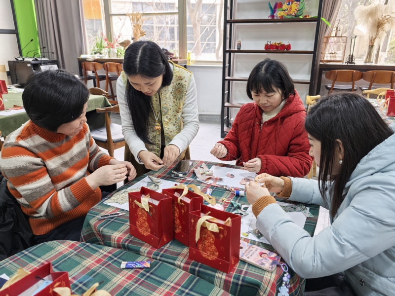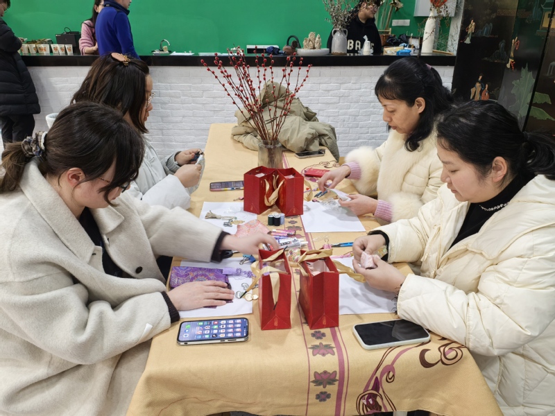 活动现场暖意融融,在宋锦文化小课堂上,大家深入聆听讲解,系统了解宋锦的历史渊源、织造技艺、纹样寓意与非遗价值,近距离触摸这项国家级非物质文化遗产的厚重底蕴。手工创作环节中,专业老师通过细致的步骤示范和耐心的巡回指导,带领女职工们开启匠心之旅。从精选锦缎、精准裁剪,到细致包边、粘贴底托,再到点缀珍珠、搭配流苏,每一个步骤都凝聚着巧思与专注。经过一番精心创作,一件件兼具传统韵味与时尚美感的宋锦挂坠、车挂件、包挂件相继诞生,尽显女职工们的灵动才情。