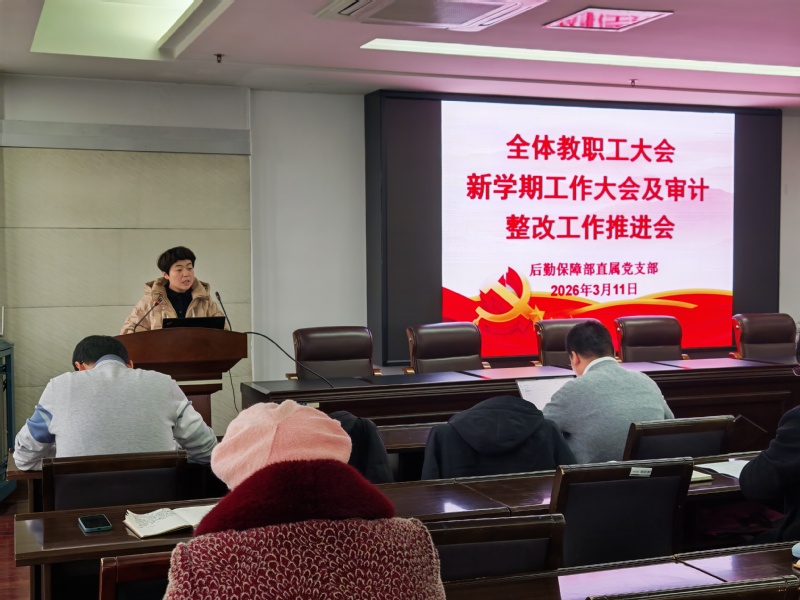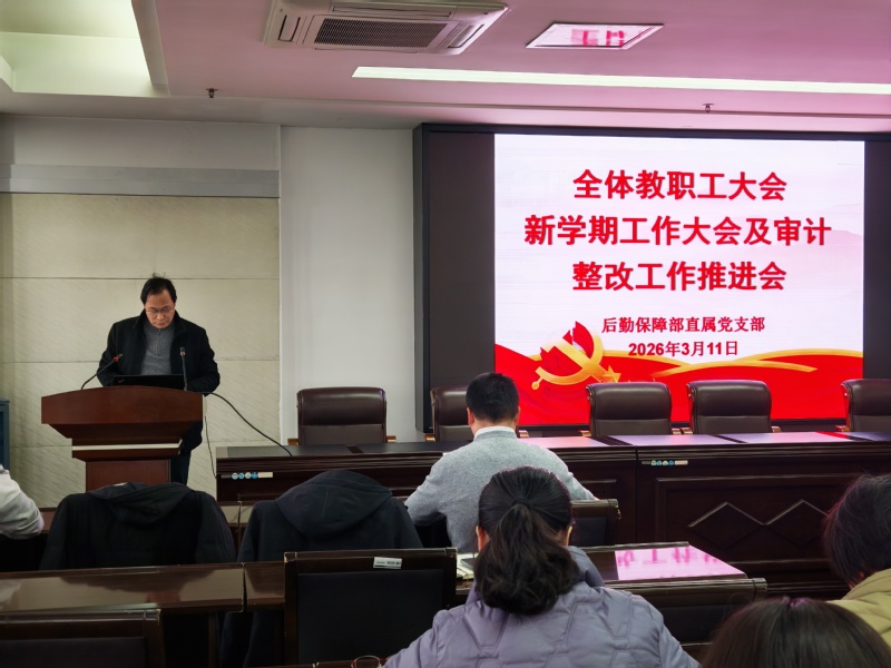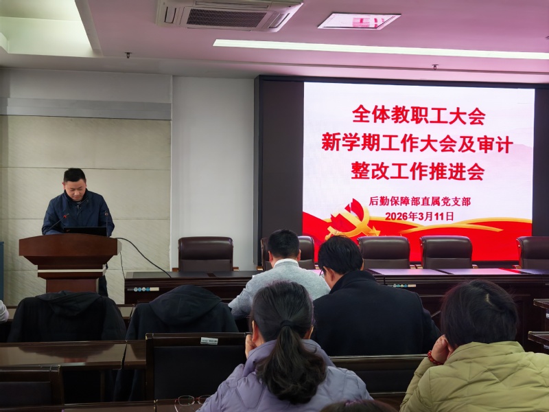 3月11日下午,后勤保障部在7401会议室召开新学期教职工大会暨审计整改工作会,旨在扎实推进审计整改任务落实,进一步提升后勤财务管理规范化水平,全面部署2026年度各项工作。会议由后勤保障部直属党支部书记、部长李凯主持,全体教职工参加。